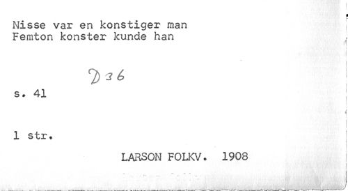 //// p //// Nisse var en konstiger man Femton konster kunde han //// f i //// • * //// s. 41 //// i //// I i //// 1 str. //// i //// LARSON FOLKV. 1908 j //// * -v , . //// A— MAuh -^U^^if i. - J.--1 -L-Vu» ' JLJ^SJÅ ¦^-.-nrvj». - ^ ////