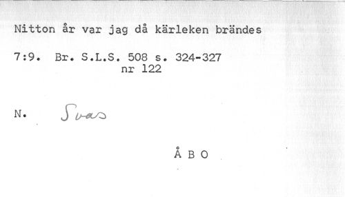 //// Nitton år var jag då kärleken brändes //// 7:9. Br. S.L.S. 508 s. 324-327 //// nr 122 //// j //// O //// A B 0 ////
