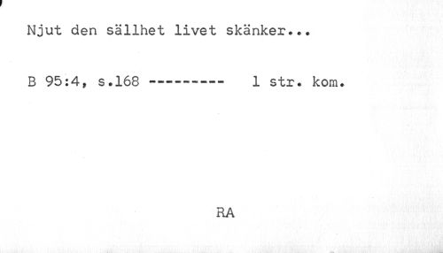 //// Njut den sällhet livet skänker... B 95:4* s.168-----—— 1 str. kom. //// RA ////