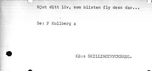 //// Njut ditt liv, som blixten fly dess dar... //// B • //// Se: F Kullberg a ® KB:s SKILLINGTRYCKSREG. ////