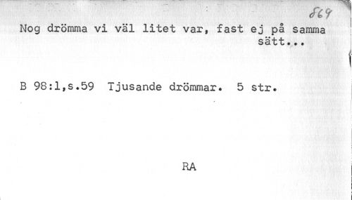 //// ... Hf //// Nog drömma vi väl litet var, fast ej på samma | //// satt#»* //// i //// i //// B 98:l,s.59 Tjusande drömmar. 5 str. //// ; , :• timi&wfm ! //// r ¦ //// ' . f //// RA ////