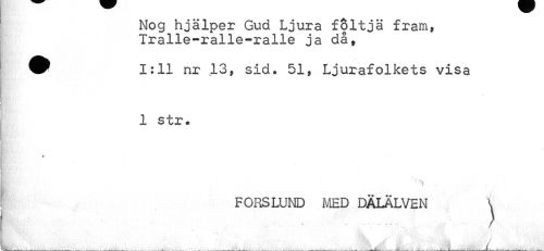 //// Nog hjälper Gud Ljura foltjä fram» Tralle-ralle-ralle ja dåf //// ^^ 1:11 nr .13, sid. 51, Ljurafolkets visa //// 1 str. //// 4 //// IP? . . //// FORSLUND MED DALÄLVEN \ //// * - * - • t .i »i m //// ! V'' i //// //// /
