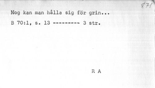 //// ...... ff //1 //// Nog kan man hålla sig för grin... ! //// { //// i //// B 70:1, s. 13----3 str. //// f //// R A ////