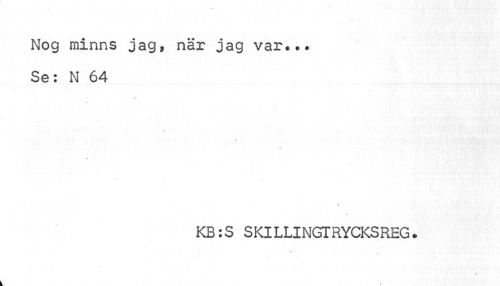 //// Nog minns jag» när jag var... Se: N 64 //// KB:S SKlLLINGT RYCKSREG. ////