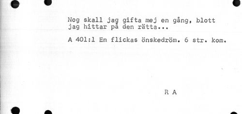 //// Nog skall jag gifta mej en gång, blott jag hittar pa den rätta.•• //// A 401:1 En flickas önskedröm. 6 str. kom. //// R A ////