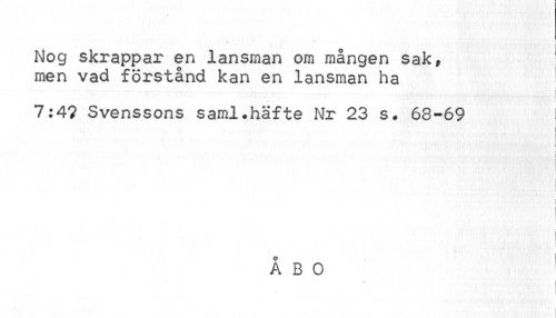//// Nog skrappar en lansman om mången sak, men vad förstånd kan en lansman ha //// I //// 7:4? Svenssons saml.häfte Nr 23 s. 68-69 //// i //// i l //// ÅBO //// I ////