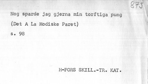 //// sro //// Nog sparde jag gjerna min torftiga pung V //// i //// |HK //// •v ' ' H //// : //// (Det A La Modiske Paret) //// s. 98 : //// i //// i //// i //// i //// H-FORS SKILL.-TR. KAT. //// I //// i i ////