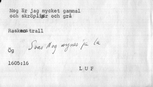 //// Nog är jag mycket gammal och skröpl&gr och grå //// Raskaos trall //// ög .JV ^ T" ft ^ //// 1605:16 //// L U F ////