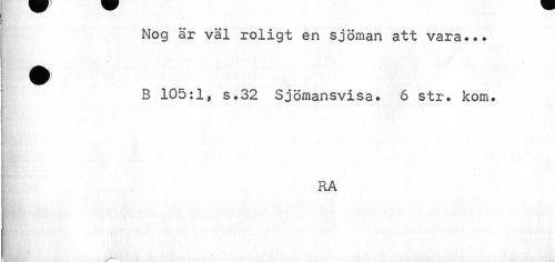 //// Nog är väl roligt en sjöman att vara... B 105:1» s.32 Sjömansvisa. 6 str. kom. //// RA //// i ////
