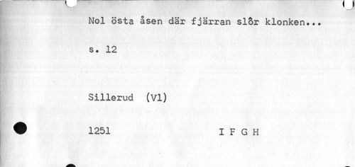 //// Nol östa åsen där fjärran slor klonken... //// s. 12 //// Sillerud (VI) //// w 1251 IF6H //// i ////