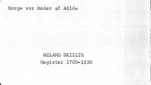 //// Norge vor Moder af AElde I //// t i //// i * //// I _ //// I //// t ¦ //// ¦ //// i //// c //// i //// L //// MELANG SKILLTR I //// Register 1700-1830 //// i" ////