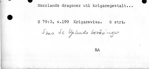 //// Norrlands dragoner uti krigaregestalt... B 79:3t s.199 Krigarevisa. 6 strt. //// HA //// K. ////