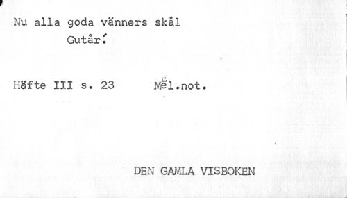 //// Nu alla goda vänners skål //// GutårT //// ; ; //// Häfte III s. 23 Mel.not. //// » //// DEN GAMLA VISBOKEN ////