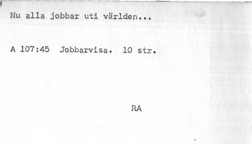 //// Nu alla jobbar uti världen... A 107:45 Jobbarvisa. 10 str. //// RA ////