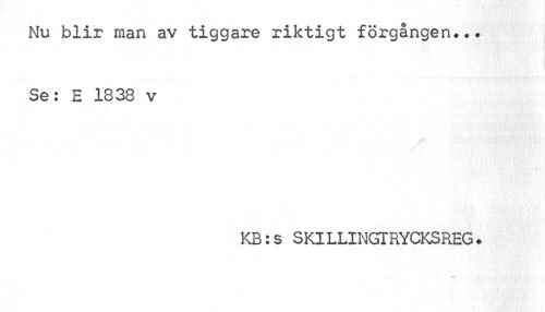 //// Nu blir man av tiggare riktigt förgången... Se: E 1838 v //// mé //// KB:s SKILLINGTRYCKSREG. ////