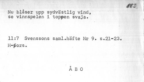 //// MZ //// v //// Nu blåser upp sydvästlig vind, se vinnspelen i toppen svaja. //// p //// i //// ¦ //// i //// i i //// 11:7 Svenssons saml.häfte Nr 9. s.21-23. //// i //// H-j&ors, //// ) i //// i i //// ÅBO ////