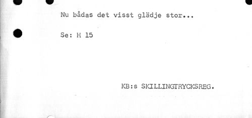 //// Nu bådas det visst glädje stor.** ? Se: H 15 //// KB:s SKlLLINGTRYCKSREG. //// , t ////
