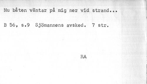 //// Nu båten väntar på mig ner vid strand... //// r //// f //// B 56, s.9 Sjömannens avsked. 7 str. //// RA I //// i //// i i //// t //// I I //// r' ////
