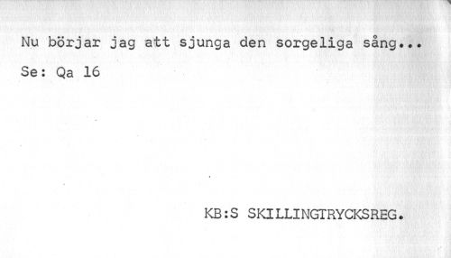 //// Nu börjar jag att sjunga den sorgeliga sång... //// Se: Qa 16 //// ••• //// KB:S SKILLINGTRYCKSREG. ////