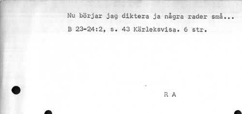 //// Nu börjar jag diktera ja några rader små... B 23-24:2, s. 43 Kärleksvisa. 6 str. //// > //// R A ////