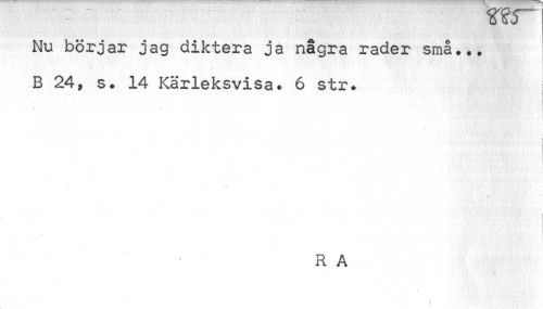 //// TS //// Nu börjar jag diktera ja några rader små,.. //// B 24, s. 14 Kärleksvisa. 6 str. //// •» * //// i i //// t i //// v //// //// /R A //// //// /