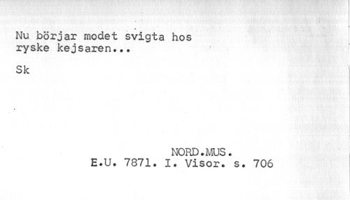 //// * »» //// Nu börjar modet svigta hos ryske kejsaren... //// Sk //// L //// ! //// NORD. MUS. ! //// E.U. 7871. I. Visor. s. 706 ////
