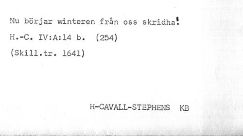 //// Nu börjar winteren från oss skridhaJ H.-C. IV:A:14 b. (254) (Skill.tr. 1641) //// H-CAVALL-STEPHENS KB //// ___ __. ____ . ____ . _____i___ ____i'Li___*_____..—— —— j.——------——-----——-------—å&eh&åM ////
