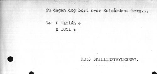 //// Nu dagen dog bort över Kolmårdens berg... //// Se: F Carlén e E 1851 s //// ¦ //// < //// s //// •KB:S SKILLINGTRYCKSREG. //// »M. . ' t . t I * ' //// ' * t * - » //// • « ////