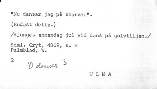 //// "Nu dansar jag på skarven11. (Endast detta.) //// /Sjunges annandag jul vid dans på golvtiljan./ Sdml. Gryt» 4869» s. 8 //// Palmblad, W. //// 2 m. //// V //// U L M A ////