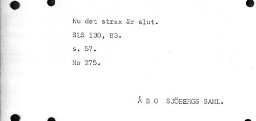 //// Nu det strax är slut. SLS 130, 83. s. 57. No 275. //// r //// ÅBO SJÖBERGS SMAL. //// f ' •• r- //// A _ - ////
