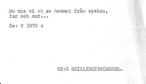 //// Nu dra vi ut av hemmet från syskon» far och mor... //// Se: Y 1870 c //// % //// //// /KB:S SKILLINGTRYCKSREG. ////