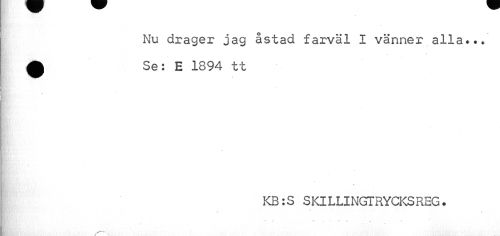 //// Nu drager jag åstad farväl I vänner alla... £ Se: E 1894 tt //// x //// KB :S S Kl L LI NGT RYCKS REG. //// X-----\ ////