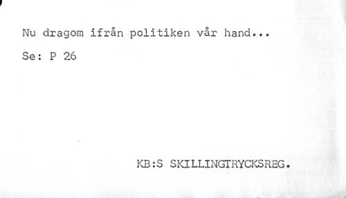 //// Nu dragom ifrån politiken vår hand... Se: P 26 //// > //// KB:S SKILLINGTRYCKSREG. ////