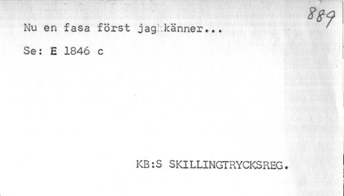 //// Nu en fasa först jag .känner... Se: £ 1846 c //// v //// I //// I //// f //// KB:S SKILLINGTRYCKSREG. //// : ¦ ////