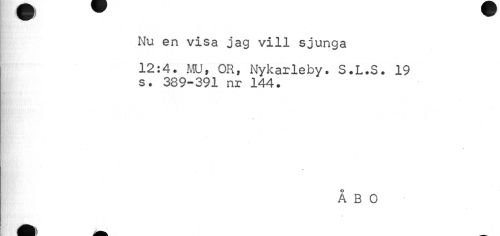 //// w w //// Nu en visa jag vill sjunga //// 12:4. MU, OR, Nykarleby. S.L.S. 19 s. 389-391 nr 144. //// ÅBO ////