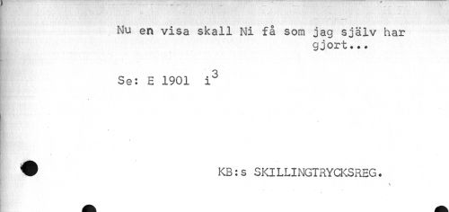 //// Nu en visa skall Ni få som jag själv har //// gjort.•• //// ; //// Se: E 1901 i3 //// \ //// ? KB:s SKILLINGTRYCKSREG. //// \ ////