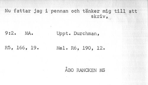 //// Nu fattar jag i pennan och tänker mig till att //// skriv, //// ¦ . ' \ //// 9:2. MA • Uppt• Durchman» //// R5, 166» 19. Mel. R6, 190» 12. //// ÅBO RANCKEN MS ////
