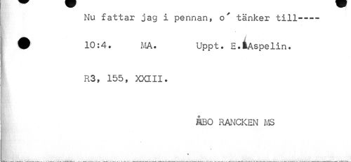 //// Nu fattar jag i pennan» o tänker till---- //// 9 10:4. MA. Uppt. E.iAspelin. //// I //// R3, 155, XXIII. //// MBO RANCKEN MS ////