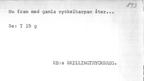 //// 3 //// Nu fram med gamla nyckelharpan åter... //// , . //// t //// Se: T 15 g //// j //// KB:s SKILLINGTRYCKSREG. //// ! //// e ¦ //// m //// i //// i //// e //// i //// c ¦ ////