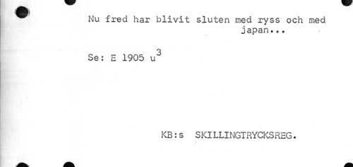 //// Nu fred har blivit sluten med ryss och med //// japan... //// Se: £ 1905 u3 //// //// /i //// KB:s SKILLINGTRYCKSREG. //// åk ^fct ////