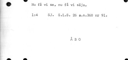 //// 9 få vi se, nu få vi säja, //// 1:4 SJ. S.L.S. 26 a.s.368 nr 91. //// •»V //// ÅBO //// i ////
