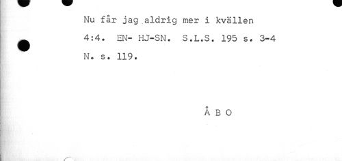 //// Nu får jag aldrig mer i kvällen ^ 4:4. EN- HJ-SN. S.L.S. 195 s. 3-4 //// N. s. 119. //// ÅBO //// s x ////