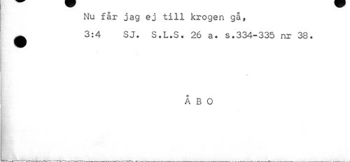 //// Nu får jag ej till krogen gå» //// ^ 3:4 SJ. S.L.S. 26 a. s.334-335 nr 38. //// \ //// ÅBO ////