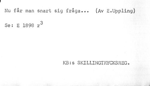 //// Nu får man snart sig fråga... (Av E.Uppling) Se: E 1898 r3 //// KB: s S Kl L LI NGT RYCKS REG. ////