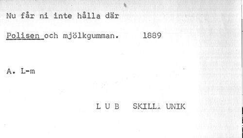//// Nu får ni inte hålla där Polisen och mjölkgumman. 1889 //// A. L~m //// i a //// L U B SKILL, UNIK , //// ¦ //// u //// I I //// i I //// i ////