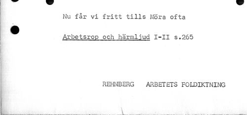 //// Nu får vi fritt tills Möra ofta ^ Arbetsrop och härmljud I-II s.265 //// REHNBERG ARBETETS FOLDIKTNING //// ¦H //// \ //// t... . , . . . .__i_ . ___i___,_____;____... ..._____ ////