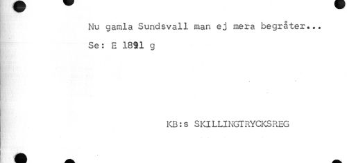 //// Nu gamla Sundsvall man ej mera begråter... Se: E 1891 g //// i //// KB: s S Kl LLI NGT RYCKS REG ////