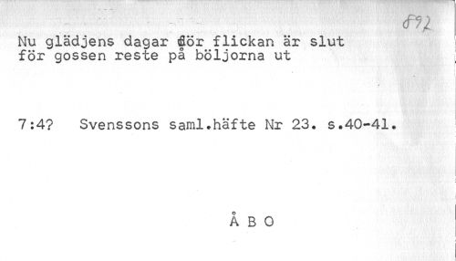 //// Nu glädjens dagar för flickan är slut //// för gossen reste på böljorna ut | //// r //// # //// 7:4? Svenssons saml.häfte Nr 23. s.40-41. ! //// i //// i //// s • i //// i //// , | //// ÅBO //// i ////