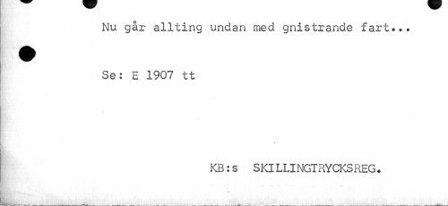 //// Nu går allting undan med gnistrande fart... Se: E 1907 tt //// s //// % //// KB:s SKILLINGTRYCKSREG. //// . « - T «s //// 9. ////