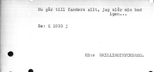 //// T -U»- //// Nu går till fänders allt, jag slår min bod //// igen... //// Se: E 1833 j //// ? //// i //// 0 KB: s S Kl L LI NGT RYCKS REG. ////